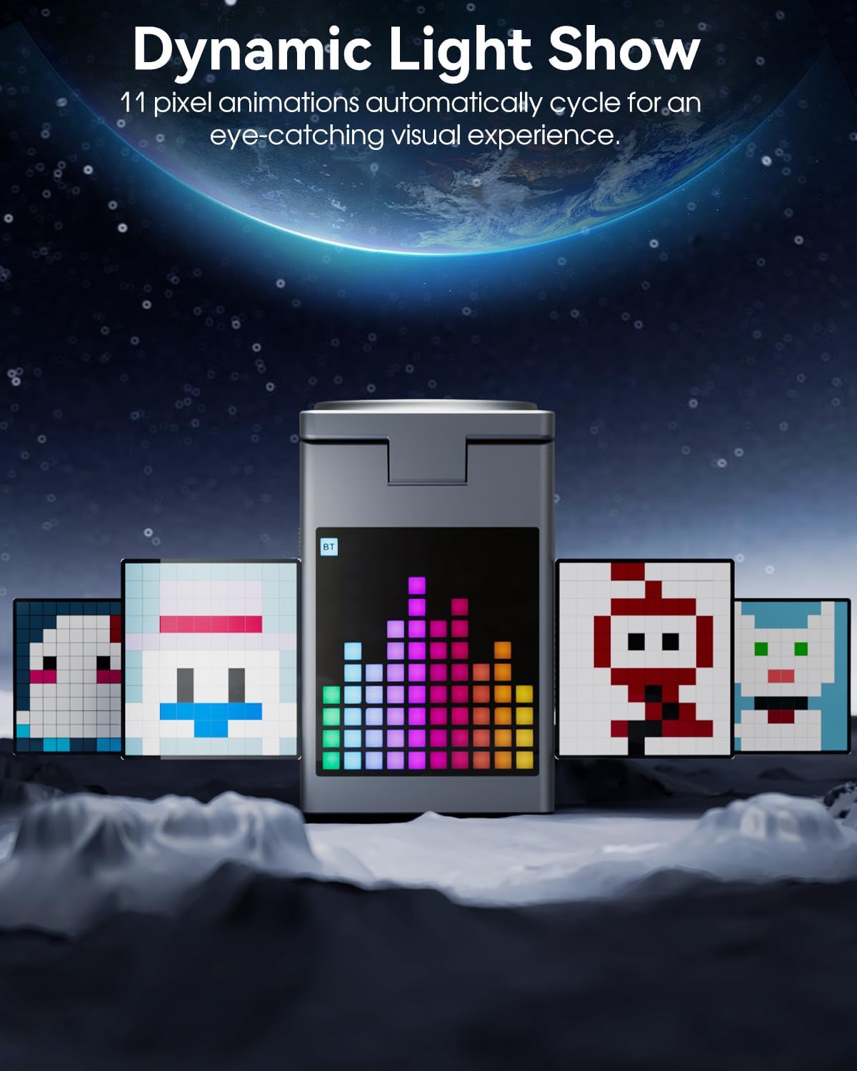 بلندگوی بلوتوث با صفحه نمایش پیکسل پویا: با بلندگوی بلوتوث داخلی از کیفیت صدای بهتری لذت ببرید و صدایی واضح و شفاف را ارائه دهید.