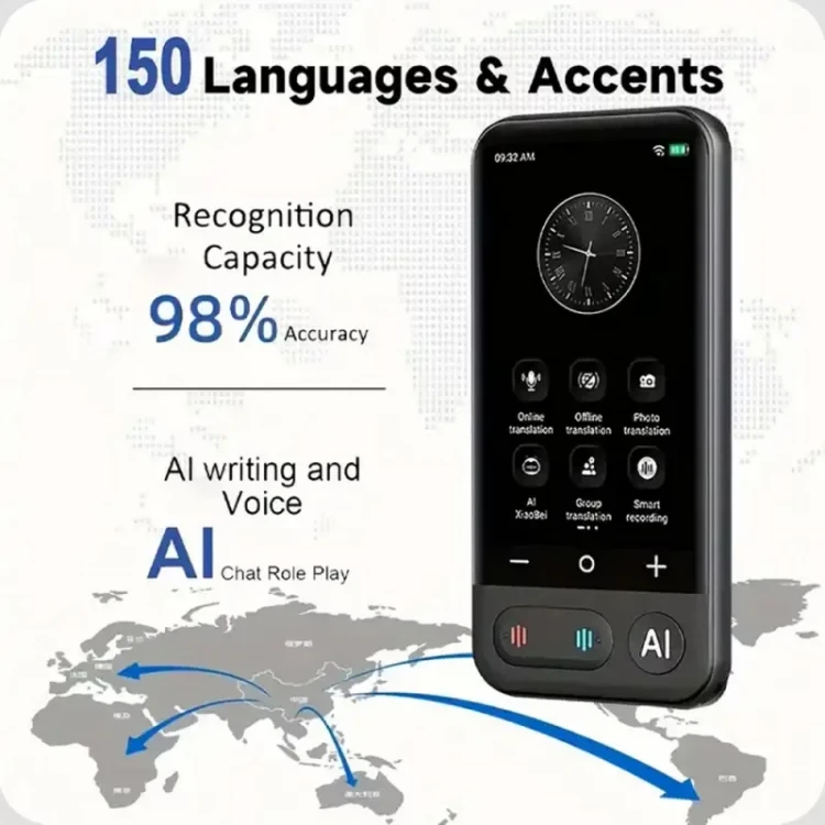 این دستگاه با کمک هوش مصنوعی پیشرفته، تا ۹۸ درصد دقت در ترجمه گفتار و نوشتار دارد و مکالمات را بسیار روان منتقل میکند.