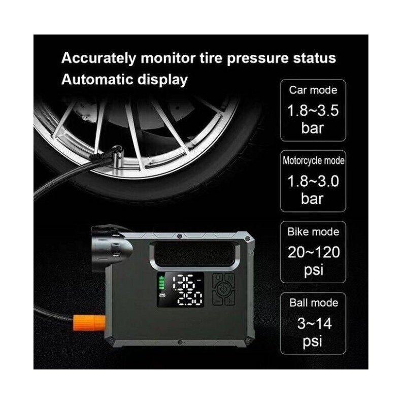 ایده آل برای : قابلیت بادکردن انواع لاستیک ها مانند انواع خودرو ها، موتورسیکلت، دوچرخه، موتور، توب بازی، تشک و بالش بادی، قایق بادی، بادکنک و…