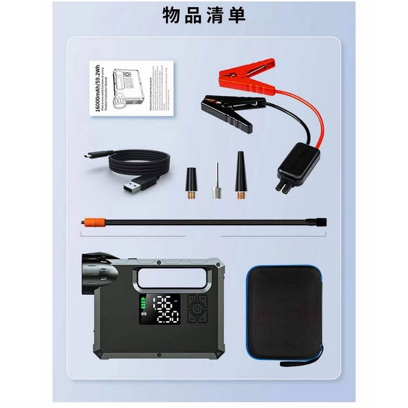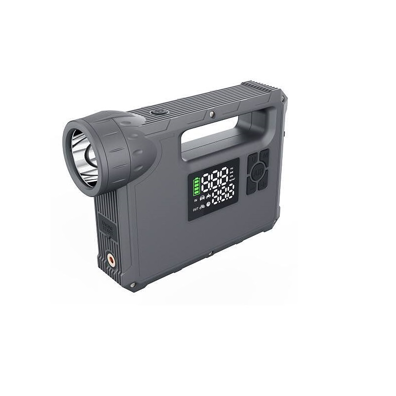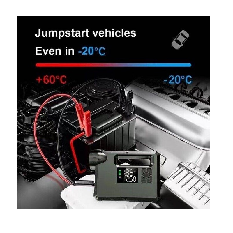 عملکرد : جامپ استارتر خودرو / پاوربانک 8000 میلی آمپر ساعت / کمپرسور باد / چراغ قوه COB / چراغ LED