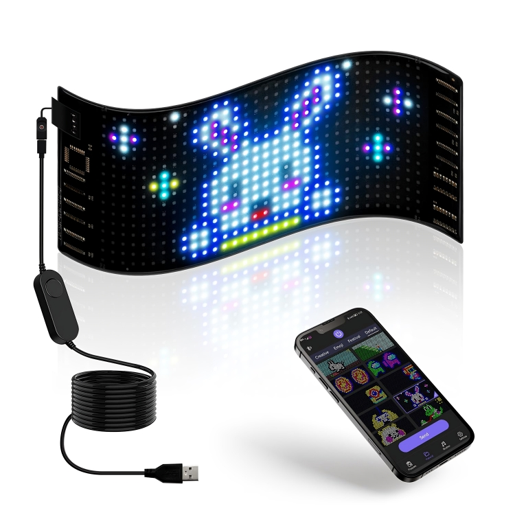 نمایشگر منعطف ال ای دی به آسانی از طریق اپلیکیشن اختصاصی به موبایل شما متصل شده و قابلیت نمایش تصاویر و متن دلخواه را در اختیارتان قرار میدهد. علاوه بر این اپلیکیشن اختاصی شامل یه مجموعه پیش فرض از تصاویر جذاب است.