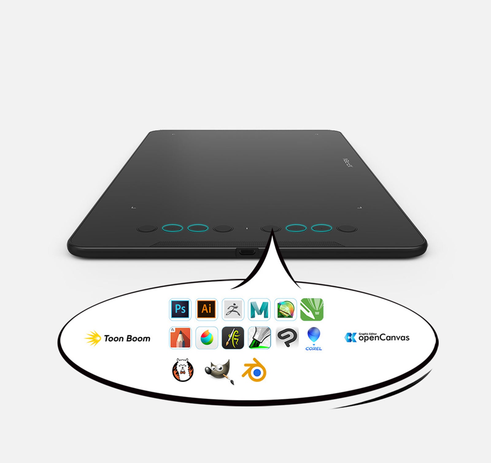 با قابلیت اتصال به سیستمهای مختلف بهوسیلهی پورت USB، شما میتوانید از این تبلت گرافیکی برای کار با نرمافزارهای گرافیکی مختلف مانند Photoshop، Illustrator و Corel Painter استفاده کنید.