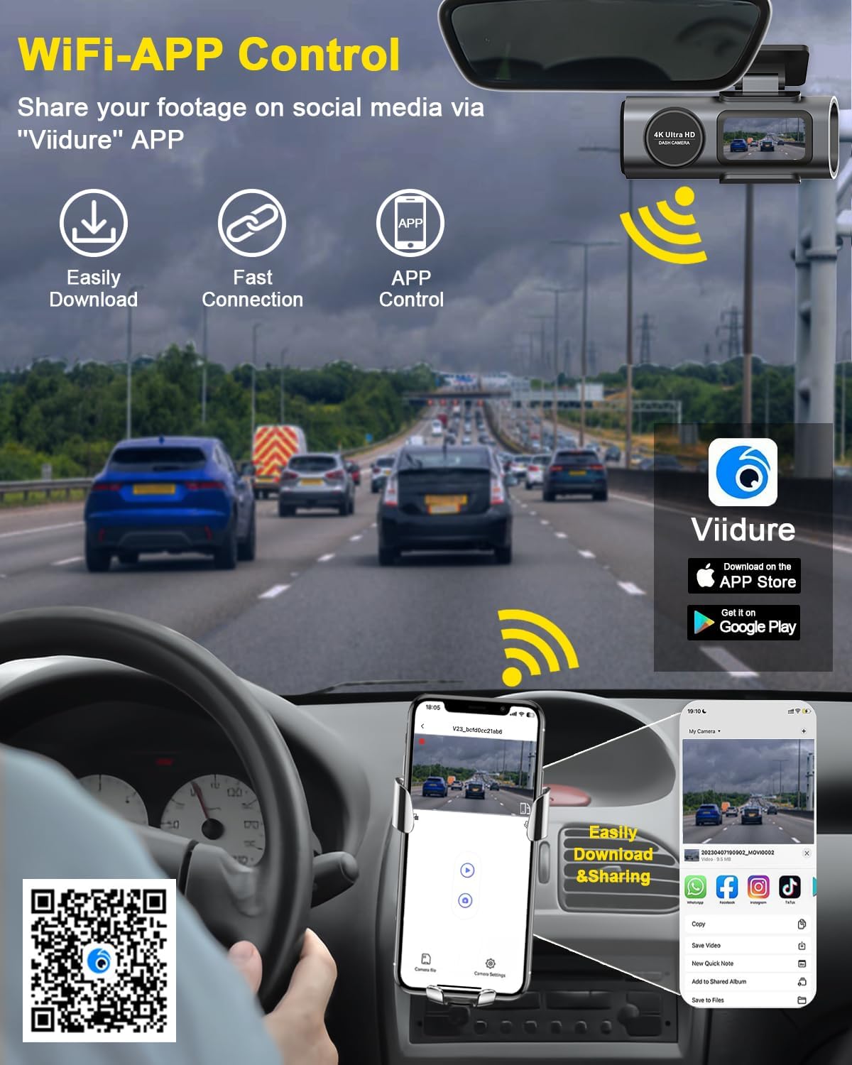 این دستگاه دوربین خودرو می تواند از طریق WiFi به تلفن همراه شما متصل شود.