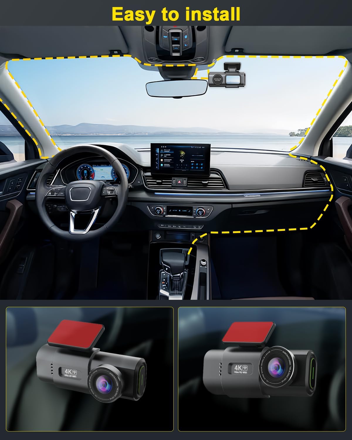 دوربین خودرو دو دوربین 4K وای فای دار دارای دوربین دوم Full HD می باشد. در مقایسه با سایر دستگاه ها که اکثرا دوربین دوم پایین تری دارند این دوربین خودرو دست بالاتری دارد.